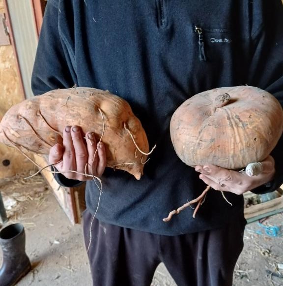 En cette semaine de reprise nous avons continué de ramasser les légumes encore au jardin (carottes, patate douce) pour les stocker. La plus belle patate douce fait tout de même 5 kg !