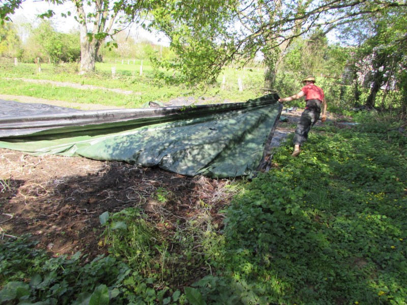 Une bâche en couverture de sol pour éliminer les mauvaises herbes, ça facilite le travail.