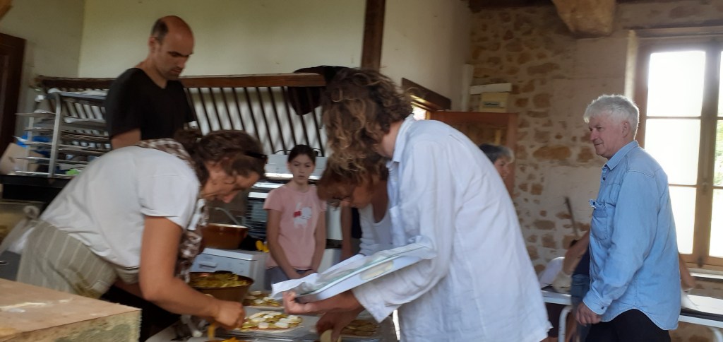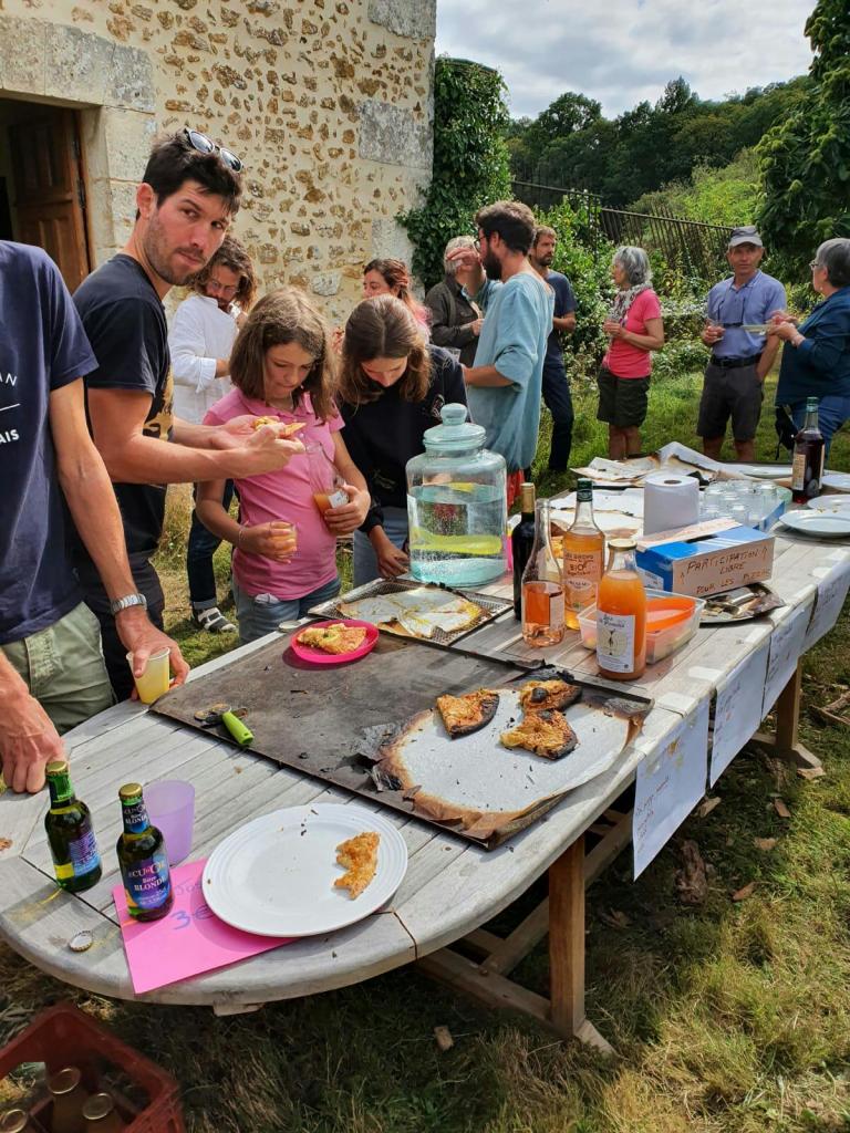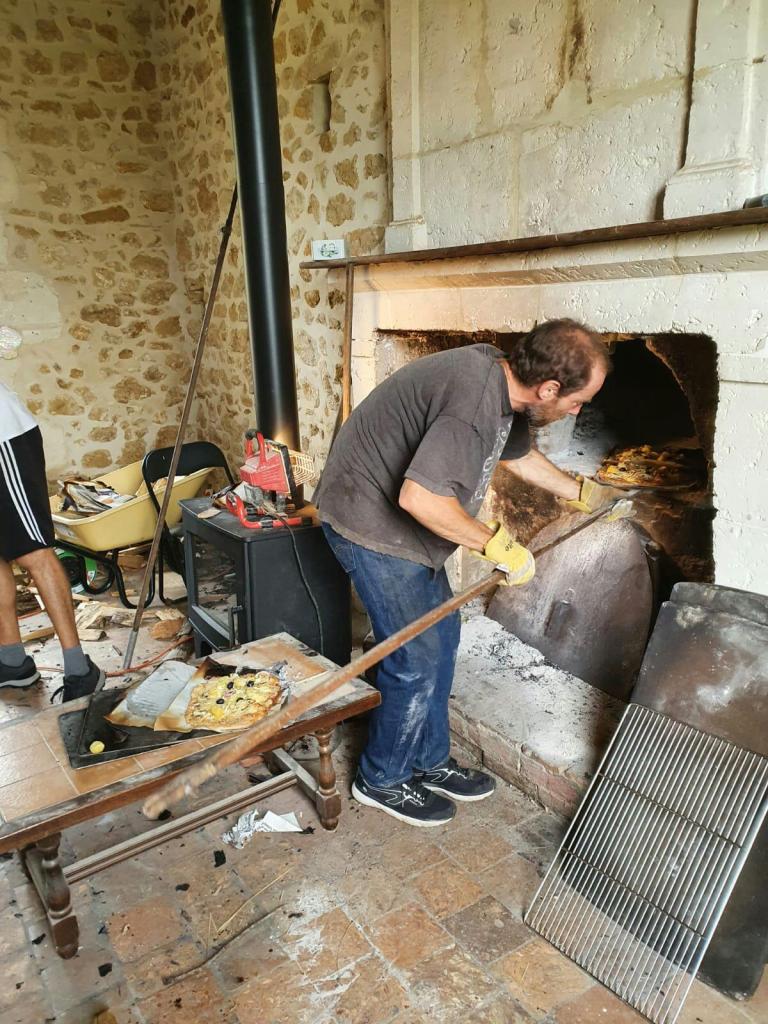 Pour rallumer le four à pain, nous avons commencé à faire les chauffes petit à petit, il n’avait pas servi depuis des décennies! Il a très bien supporté cette remise en marche et nous a permis de proposer des pizzas bien bonnes, garnies de nos légumes et des produits locaux. Un grand merci à tout ceux qui nous ont donné des coups de mains, prêté du matériel et fait cadeaux de leurs produits 🙂 Bravo aussi aux courageuses guiboles qui ont pédalé jusqu’à Saint Jouin pour visiter la ferme!