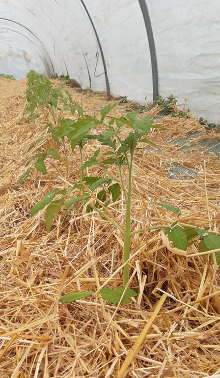 A la ferme, nous poursuivons les plantations comme sur la photo ci-dessous, les premières tomates sont implantées.