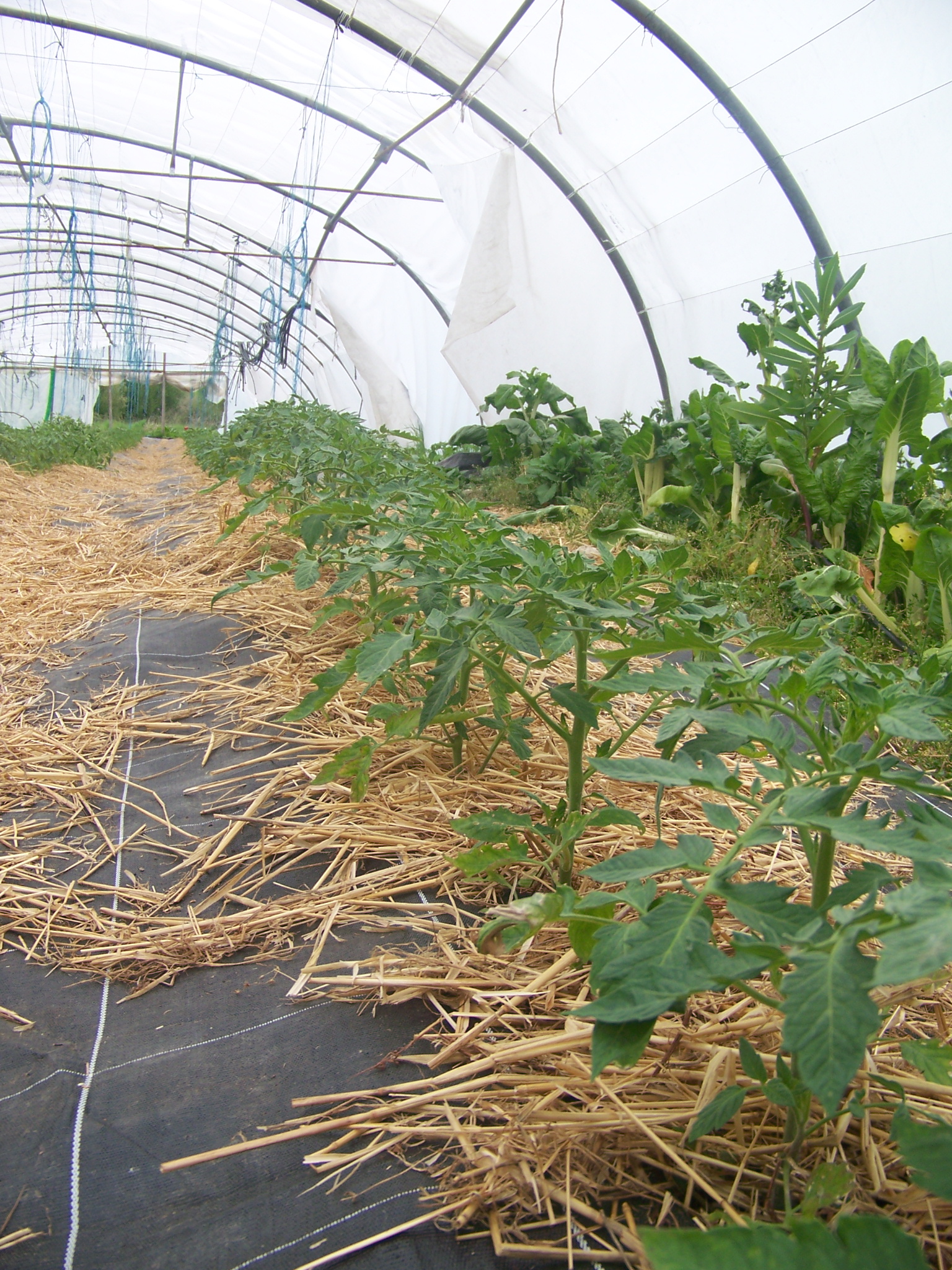 Beaucoup de travail à la ferme à cette saison. Nous avons préparé la zone qui accueillera nos courges (travail du sol, fumier, paillage, bâchage). Nous continuons les semis, repiquages, dépressage, arrosages dans la serre à plants. Et surtout nous profitons de cette météo sans gelées matinales pour implanter beaucoup de légumes aux jardins. Plus de 600 pieds de tomates sont déjà installés, 120 courgettes, 70 concombres, 180 aubergines, les légumes d’été sont de sortie.