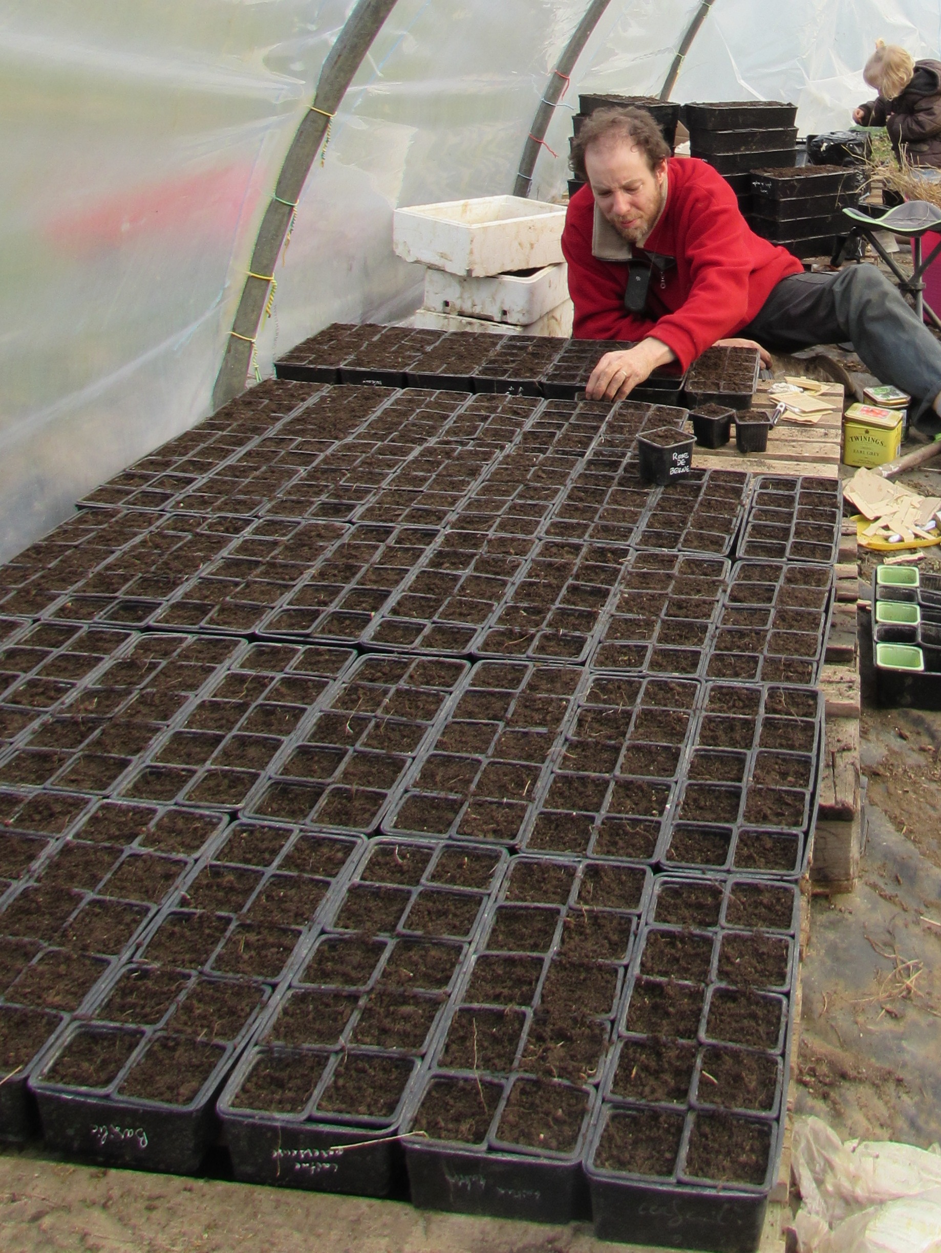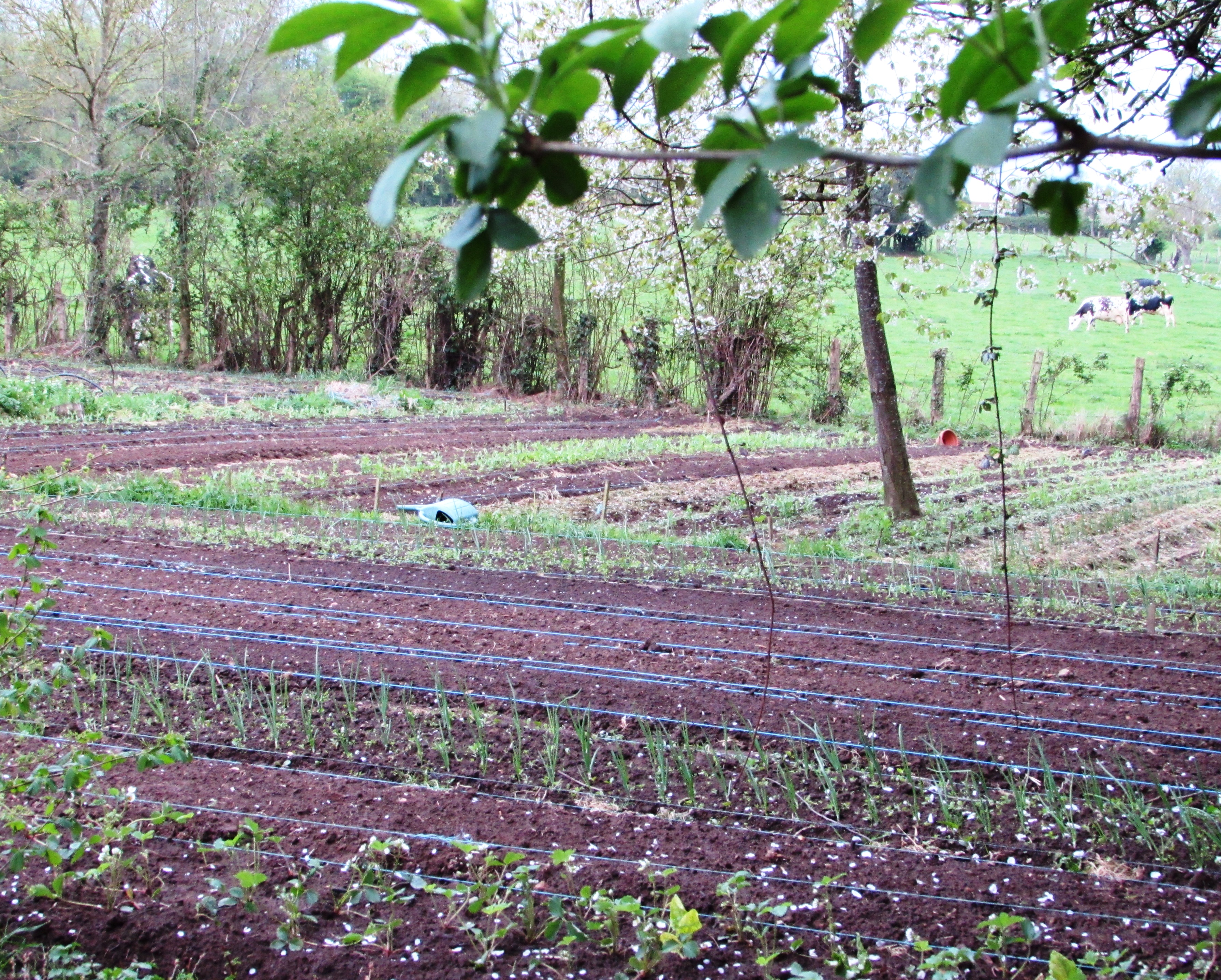 Les plantations de tomates sont terminées… ça a été un gros travail de déplacer toutes les serres, les mettre en culture et installer les tomates. Leurs premiers petits apparaissent, on est vraiment en avance cette année, en général les fleurs arrivent autour du premier juin, on a un mois d’avance. Les légumes poussent un peu plus lentement que prévu, carottes, betteraves et pommes de terre vont attendre encore un tout petit peu. La nouveauté de la semaine: de jeunes navets tout frais et le mesclun! On attend encore d’être en capacité de proposer un panier plus conséquent pour entamer les livraisons.