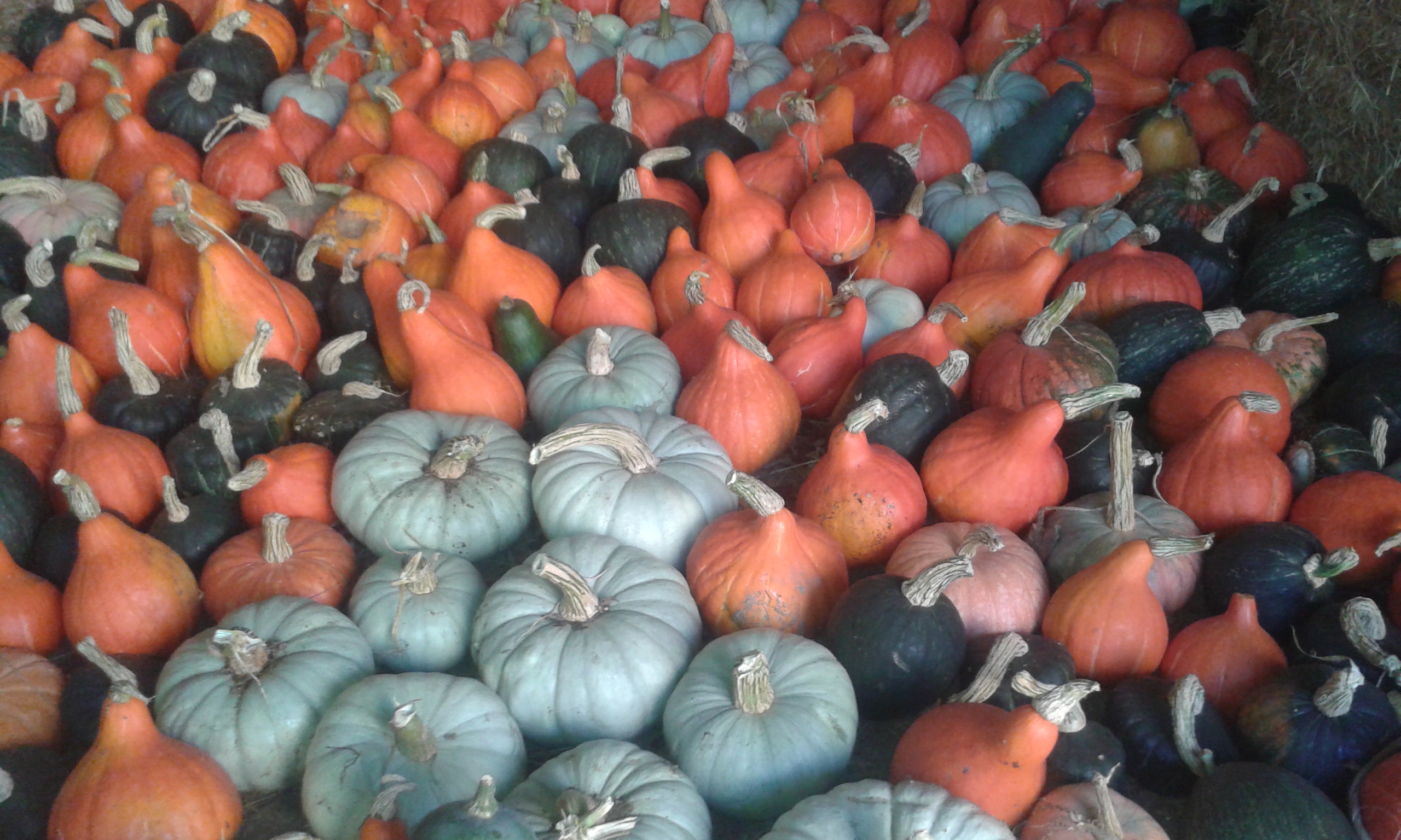 Courges: 2,50€/kg. Potimarron, buttercup, butternutbleues de Hongrie, Kabocha, Sucrine du Berry, patidou… Nous les vendons entieres, en fonction des variétés cela va de 1,5kg à plus de 3 kg…