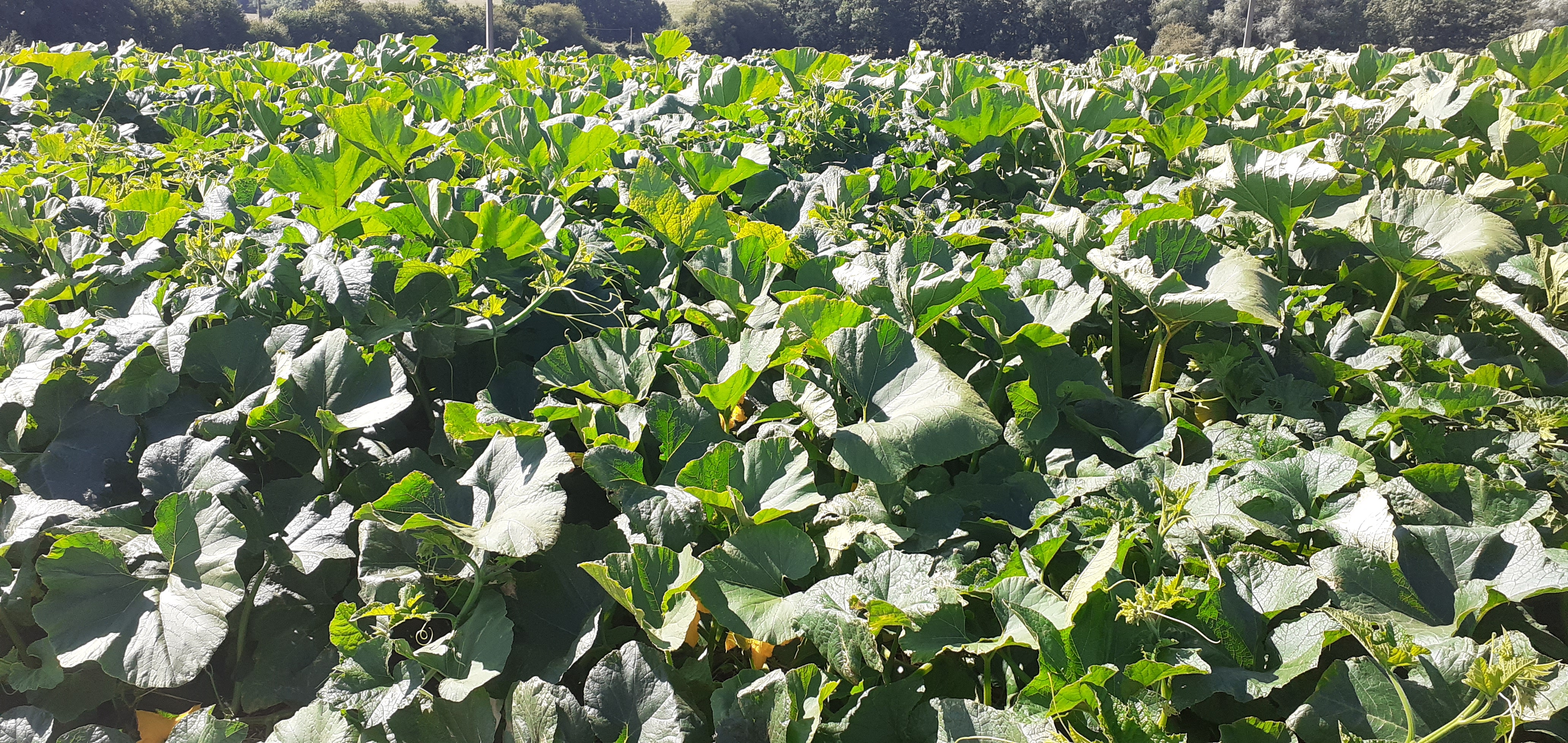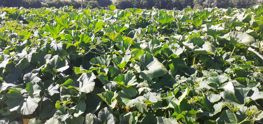 Cette photo de notre champ de courge a été pris vers 12h le 11 aout, jour de canicule, elles n’ont reçu aucun arrosage, ni à leur plantation, ni depuis. Elles sont magnifiques et commencent à être couvertes de fruits.