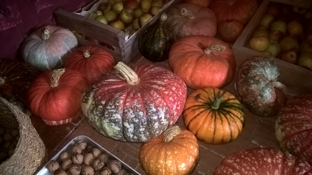 Courges: 3€/kg. Pour cette semaine automnale… des potimarrons, butternuts ou buttercups